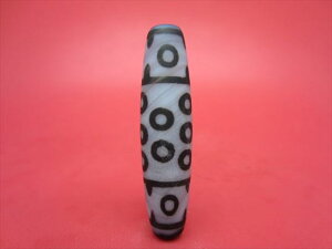 【チベット高級天珠】 九眼天珠 ☆商品情報☆ 長さ:約40±1mm 直径:約Φ15±1mm 穴サイズ:約Φ3.5±0.2mm 中国・チベット天珠 ※特殊技法で加工された物のため、形状やサイズのばらつき、表面や穴周りにキズや凹み等がある...