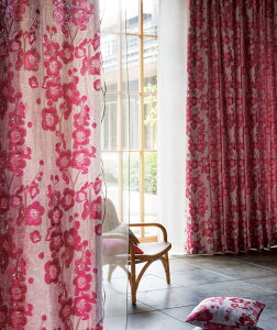 商品名オーダーカーテン スタンダード縫製ヨコ使い・裾刺繍 Strawberry Thief /イチゴドロボウ 約2.5倍ヒダ 両開き素材ウォッシャブル オフシェイドクラス4 夏ECOランクC価格:22,300/m 7,690/m2 巾...