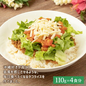 かんたん調理。お店の味をご家庭で楽しめます。ソース・ケチャップ含めて添加物不使用のタコライス用タコスミート。超大盛なたっぷり110gのパックが4食分入っています。3〜5分湯煎して温め、レタスやトマト、チーズなどお好きな具材をの