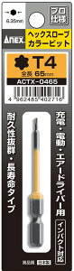 ANEX 作業道具 商品説明 色で先端サイズの見分けが簡単 先端精度抜群でアンビルに 影響のない両端非塗装 マグネットなし 耐久性抜群・長寿命タイプ 充電・電動・エアードライバー用 (インパクト対応) 【材質】 ビット:クローム・モリブ