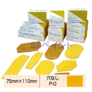 サイズ:75mm×110mm 仕様・・P−0(穴なし) 研ぎ粉の絡みの発生を抑え、研磨力の維持性に優れた、驚きの空研ぎマジック式研磨紙、スーパータックGソフト 特長・・強靭な研磨材が、素晴らしい研磨性と持続性を発揮します。 特殊な目詰まり