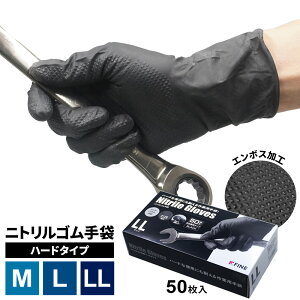 ハードな作業もできる使い切り手袋耐油、耐薬品性に優れており、水やオイルがしみ込まずに快適に作業できる、使い捨てのニトリルゴム手袋。丈夫で引っ張りに強くダイヤ型エンボス加工で滑りにくいだけでなく、指先を使う細かい作業も