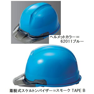着脱式スケルトンバイザー(TYPE B)付ヘルメット ※商品画像はヘルメットカラー62011ブルー/バイザーカラー スモーク <製品仕様> ・飛来落下物用 ・墜落時保護用(スチロール入り) ・電気用 ・通気孔ナシ 〇材質:本体/ABS...