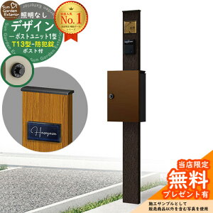 機能門柱 デザインポストユニット1型 照明なし T13型ポスト(防犯錠)セット カスタマイズしやすい高級感漂う門柱! 販売条件 ◆詳しくはこちらをご確認ください サイズ 詳細図をご確認ください カラー ポール:・OKオーク ・WNウォールナ