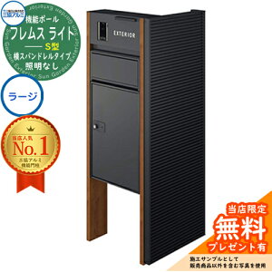 門柱 ポスト 機能ポール 機能ポール フレムス Light サイドスクリーン付きタイプ 横スパンドレルタイプ 本体:木調色 サイドスクリーン:形材色 照明なし 【S型】宅配ボックス:ラージ メール便や宅配便に対応し機能と意匠性をアップさせた