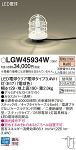 製品仕様型番・メーカー・商品名LGW45934W パナソニック LED電球アプローチスタンド(電源プラグなし、3.4W、電球色)商品説明●LED電球クリア電球タイプ3.4W1灯(E17)●LED(電球色タイプ)・Ra80●光源色温度:...