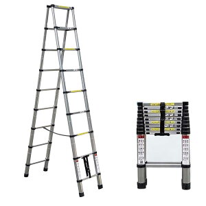 コンパクトに収納!!女性でも簡単 伸縮性アルミはしご 脚立 高さ調節可能 【スライド式】