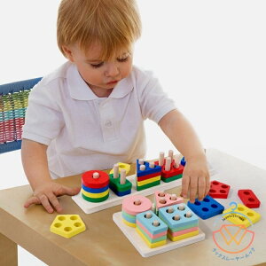 4種類の形状のブロックを円柱に積み上げていくパズルゲームです。丸・三角・四角の形を認識する訓練ブロックです。小さいお子様でも楽しく遊びながら頭や指先を使い、考える力や創造力、集中力を育みます。カラフルで見た目も可愛い、