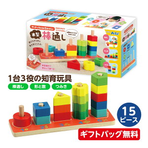 遊びながら形と数が覚えられる! ラッピング袋付きでギフトにぴったり! 全8色のカラフルな穴あきつみきです。モンテッソーリ教育に基づいた、遊びながら形と数を覚えることができる1台3役の知育玩具です。シンプルな形状なので、成長に合