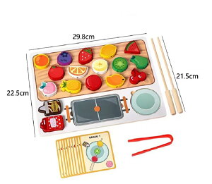 1.バーベキューの型はめ 2.棒通しおもちゃ 3.紐通しおもちゃ 4.クリップでブロックを挟むの指先訓練 ●おままごとをしながら知育ができて、豊富な遊び方で飽きずに興味津々遊べるおもちゃです。 ●両面ゲ