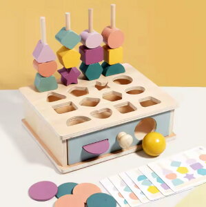 【多目的知育玩具】1歳〜6歳また以上の年齢に合わせる多機能なおもちゃです。棒通し形合わせ?型はめの遊び、想像力を育てるごっこ遊び、ゲームや数字の認識など遊びは様々。遊んでいるうちに、大きさの違いや色の認識...