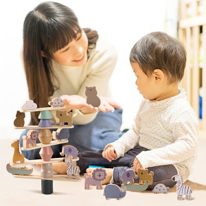 かわいい動物を乗せた三連の木のおもちゃの汽車型プルトイ!どんな方向に引っ張っても倒れにくい連結部分で、思う存分引っ張っちゃおう。荷台のブロックは積木、棒通し、カタチ分けなど知育な遊びも楽しめ、長くお遊びいただけます...