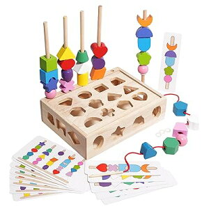学習効果:形状認識、色の識別、パターンマッチング、手先の運動能力を育む多機能な教育玩具ですセット内容:木製ベース、カラフルな形状ビーズ、パターンカード、紐が含まれた完全な遊びセットです安全設計:子供に優しい木製素材を