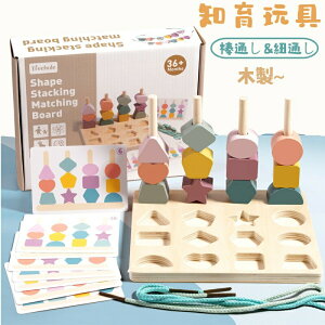 カラフルな木製おもちゃ 紐通し 棒通し おもちゃ 幼児 指先訓練 形状認知 早期開発