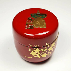 .............【作品詳細】............. 春の訪れを感じさせる繊細な美しさを持つ逸品です。この中棗は、鮮やかな朱塗りの背景に、愛らしい立雛の蒔絵が施されており、その上品なデザインはどんな茶室にも映えることでしょ...