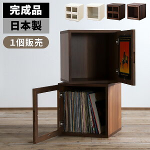 日本製で完成品のレコードラックでレコードを収納 ■扉付きのレコード収納ボックスは積み重ねができる ■扉は右左のどちらでも開く便利なキューブボックス ■レコードを魅せてリビングのディスプレイラック