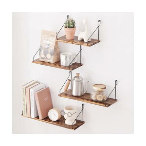 壁を傷つけない29+36+42+50cm4点セット 壁掛け棚 賃貸 壁 棚 穴あけない ウォールラック 壁に付けられる家具 飾り棚木製 簡単取り付け 洗面所/キッチン/トイレ/玄関 壁棚収納 (ダークブラウン)ブランド色(4つパッ...