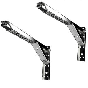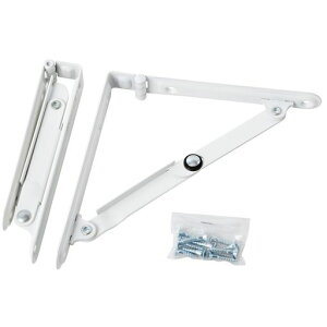 折りたたみが出来る棚受け金具で、不要な時はたためて邪魔になりません。狭いスペースのキッチン回りの棚受け、机を少し大きくするため 折りたたみテーブルを作りたい。そんな用途に適した棚受け金具です。不要時は壁面に沿う形で床に