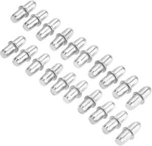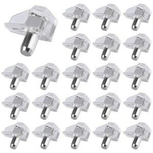 パッケージ内容:20個セット サイズ:直径5mm長さ約16mm 差し込みタイプで、直径5mmの差し込み穴に対応します。 材質:金属、プラスチックカラー:シルバー/クリア 用途:本棚、キャビネット、クローゼット、シャフトサポート、家具な...