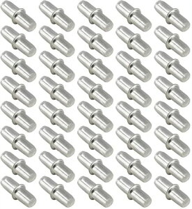 パッケージ内容:40個セット サイズ:直径5mm、長さ約16mm重量:1個約2.5g 材質:金属、プラスチックカラー:シルバー/クリア 対応:差し込みタイプで、直径5mmの差し込み穴に対応します。 用途:本棚、キャビネット、クローゼッ...