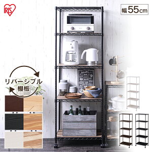 お部屋の雰囲気に合わせて選べる「リバーシブルウッドボート付き」マットカラーのメタルラック。ウッドボードを裏返すだけでイメージが変わります。