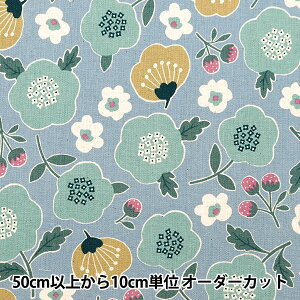 【数量5から】 生地 『綿麻キャンバス 北欧の森 ブルーグレー×ブルー SQ35801-3D』 北欧風デザインのコットンリネン生地 暮らしになじむ北欧デザイン柄、ぽってりしたお花がかわいらしいデザインです...