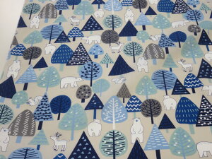 生地 『10番オックス 北欧の森 AP21705-1C』 厚手の10番オックス生地です。森を抽象的にデザインした北欧テイストあふれる柄です。帆布に近い厚手の10番オックスなので、ナチュラルな肌触りと丈夫な生地感が特徴です...