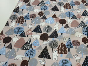 【数量5から】 生地 『オックスフォード 北欧森柄 ベージュブラウン SOPOA-MESTA-B』 【ユザワヤオリジナル】 使いやすいオックス生地 北欧風デザインがおしゃれなオックス生地。 オックスは厚みがあるのに通気性がよく...