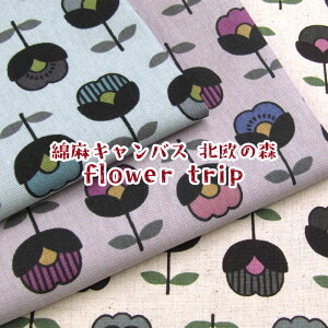 北欧のお花畑へ小さな旅行♪ 丸みのあるお花たちがひょっこりと並んでいてとっても可愛いです。 シンプルなフラワーデザインが北欧の雰囲気たっぷりで素敵ですね♪ 素材は綿85%、麻15%の綿麻キャンバス。 やや薄手で程良くハリのある