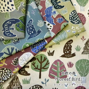 【数量5から】 生地 『綿麻キャンバス 北欧柄 森 AP45901-3A』 いろんな木が生えた北欧タッチの森が描かれた生地 ナチュラルな風合いの綿麻生地。 綿麻キャンバス布は、トートバックやポーチなどの小物雑貨や...