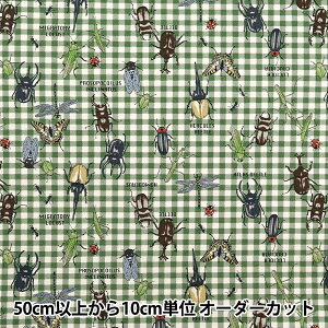 【数量5から】 生地 『オックス カラフルキャンバス 森のヒーローたち グリーン COCAN-HERO-GR』 KOKKA コッカ お子様の好きな柄で入園入学準備を! 渋めカラーのギンガムチェックと昆虫を組み合わせたデザイン...
