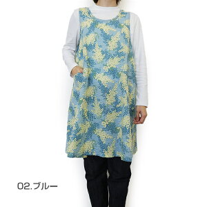 ハナエモリから上品で華やかなチュニックエプロンが登場♪鮮やかな色使いが目を惹く一枚です。 乾きやすくお手入れしやすいポリエステル素材なので通年でお使いいただけます。 着たままサクサク動ける背付きタイプなのでお仕事が捗る