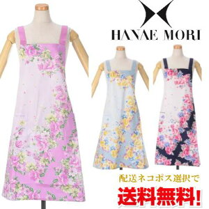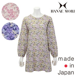 HANAE MORI ハナエ モリ エプロン ワンピース おしゃれ かわいい 日本製 ハナエモリ 花柄 森英恵 バッククロスエプロン 綿100% レディース 上品 爽やか フラワー 母の日 ギフト