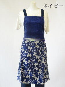 お花と蝶のコロンとした丸いフォルムが可愛らしいハナエモリのエプロン。 綿100%のサテンの生地で、さりげない光沢感が上品です。 肩紐が落ちる心配のない着心地に安定感のある背付きスタイルです。 ウエスト紐の絞りでサイズ調整ができ