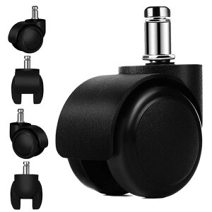 軽量且つ頑丈で動きもスムーズなので、床に傷付きにくいです。 取り付け簡単:差込式キャスターで簡単に取り付けできます。直径11mmの差込穴の椅子に対応でき、すでにキャスターをご使用の場合でも取替えが