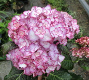日本の古品種でホンアジサイの変異種です。 装飾花の縁が丸まって渦を巻くように見えることから『ウズアジサイ』と呼ばれ、可愛らしい雰囲気があります。 花は薄青色ですが、中性土壌でピンク色に咲かせたものは「梅花咲」と呼ばれて