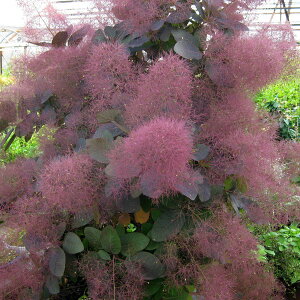 スモークツリー・ピンクパール 別名:ハグマノキ(白熊の木) ウルシ科 ハグマノキ属 落葉低木〜小高木 13.5cmVP 花色:白〜ピンク色 花期:5〜7月(花柄は6〜7月) 日照:日向 ふわふわと煙のように見える花(正確には花後の花...