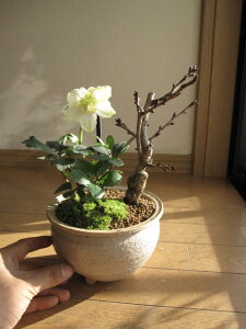 幸せの白い花クリスマスローズ 桜の 開花予定は 3月下旬〜 4月初旬です 花芽確認済みの 桜を お届けいたします。 クリスマスローズと桜の寄せ植え サイズ 樹高 約20センチ 樹幅 約15センチ 当店オリジナル信楽鉢入り 職人が手作りで