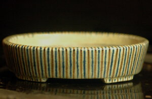 横13cm 高さ3.5cm 寺畑陶園は今なお瀬戸で盆栽鉢を焼いている数少ない窯元です。父である寺畑真山氏の伝統を重んじつつ里美さんの感性に溢れた作風は手のひら盆栽や下草に最適となっております。