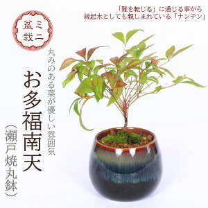 撮影:10月 ナンテンという名前から「難を転じる」という意味を表し、 縁起が良いと言われる南天のミニ盆栽です。 お多福南天は、くるんとした丸い葉が特徴。優しい雰囲気があります。 実は付けない品種で冬