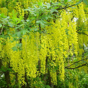 ●品種特性 大きな花房がフジの花のようにひと続きになって垂れ下がる様はまさに黄金の鎖。欧米では庭園樹として重宝されています。厚さには少し弱いので一日中日のあたる場所は避けてください。 ●用途・性質 ・用途:庭植え、シンボ