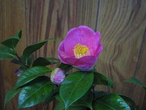 藤衣 (ふじごろも) 藤桃色一重筒咲き中輪 11月〜3月咲 尾張五色椿との交配種で、「一重茶花向き椿」です。