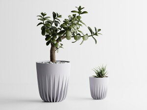 縦華鉢(たてはなばち) 古典建築の優雅さと自然の調和を感じさせるデザインが、植物の魅力を引き立てます。 シャープなラインから柔らかく広がるフォルムが、モダンで洗練された印象を与えます。 リブの立体感が光を受けるたびに陰影
