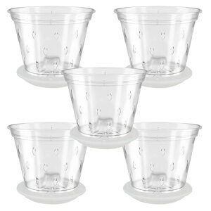 nijimomo 穴空き 植木鉢 5個セット 透明 プラスチック スリット鉢 底皿付き 観葉植物 軽量 4号 5号 (5号) "観葉植物やガーデニングに!透明スリット鉢(底皿付き)5個セットです。光を通す見た目も美しい植木鉢で...