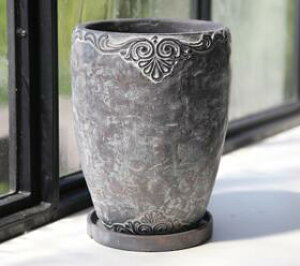 アンティーク・シャビー・おしゃれな植木鉢 石から削り出したかのような質感が特徴的な植木鉢。実際に陶土には石の粉が混ぜられています。高温で焼かれた良質の素地は薄く、かつ凛とした硬さに仕上げられました。モ...