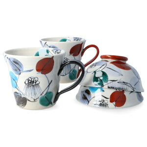 【九谷焼】飯碗・マグカップセット 彩り椿(赤)/虚空蔵窯