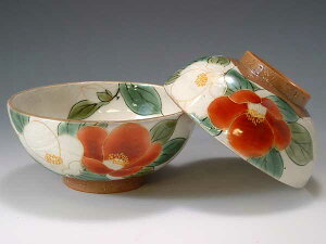 表面には青色と桃色の淡い椿の絵付けが描かれており、食卓を華やかに見立ててくれます。温もり溢れる風合いは穏やかな暮らしを楽しむご夫婦への贈り物におすすめです。 ■ 夫婦茶碗 椿文 ペア 【 九谷焼...