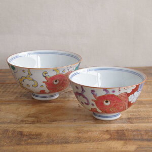 サイズ:同径10.5 高6 (cm) ■素材:磁器 ■生産地:日本(九谷焼) 九谷焼でできた飯碗を2つセットにしたものです。 結婚祝いや結婚記念日、陶器婚式や磁器婚式、銀婚式や金婚式など、夫婦やカップルへの贈り物として人気があります。 日