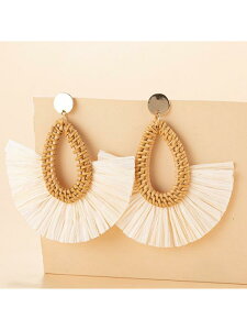 レディース ピアス ラタン アクセサリー 耳飾り 夏 籐 手編み ボヘミアン エスニック 民族風 フリンジ 個性的 リゾート カジュアル ナチュラル おしゃれ 円形 水滴形 楕円形