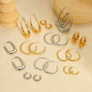 ・カテゴリ: イヤリング・対象: 女性・スタイル: ファッションOL、通勤・素材: ステンレス・純度: 18K・加工: メッキ加工・デザイン: U字型、幾何学模様、円形、楕円、環形・カラー展開: ゴールド、スチール、ローズゴールド